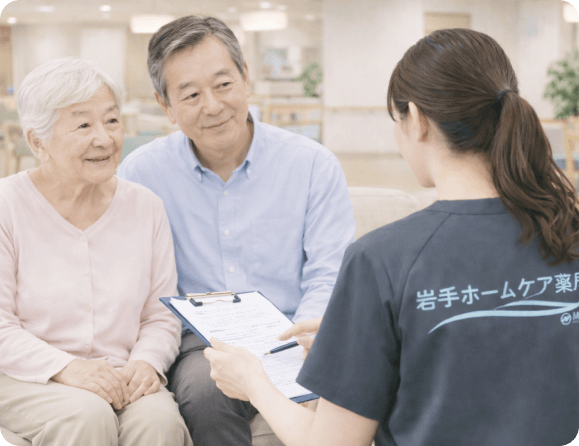 退院後や自宅療養時に 「どこで生活するのが最適か」 という不安は患者様・家族にとって大きなものです。岩手ホームケア薬局は、日常的に多くの施設・医療機関と連携している特徴を活かし、 最適な“施設”または“在宅療養”を無料で紹介します。
